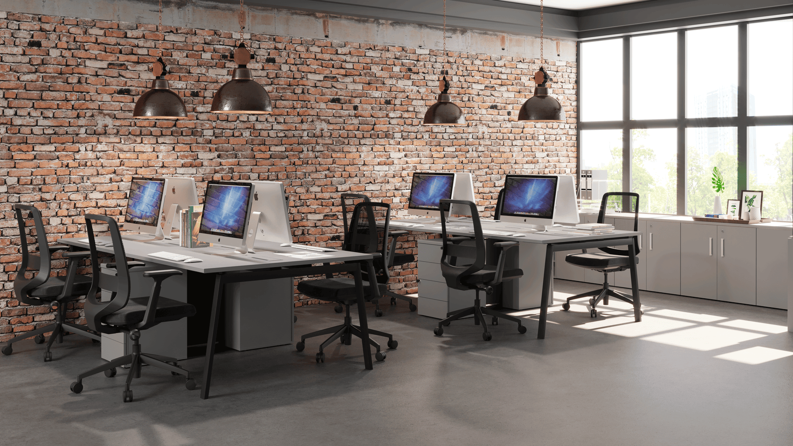 Privacidade é o foco na Linha Create. Com plataformas de trabalho, mesas e divisores de mesa que demarcam espaços, ela é ótima para compor ambientes que precisam ser subdivididos, sem perder o estilo.